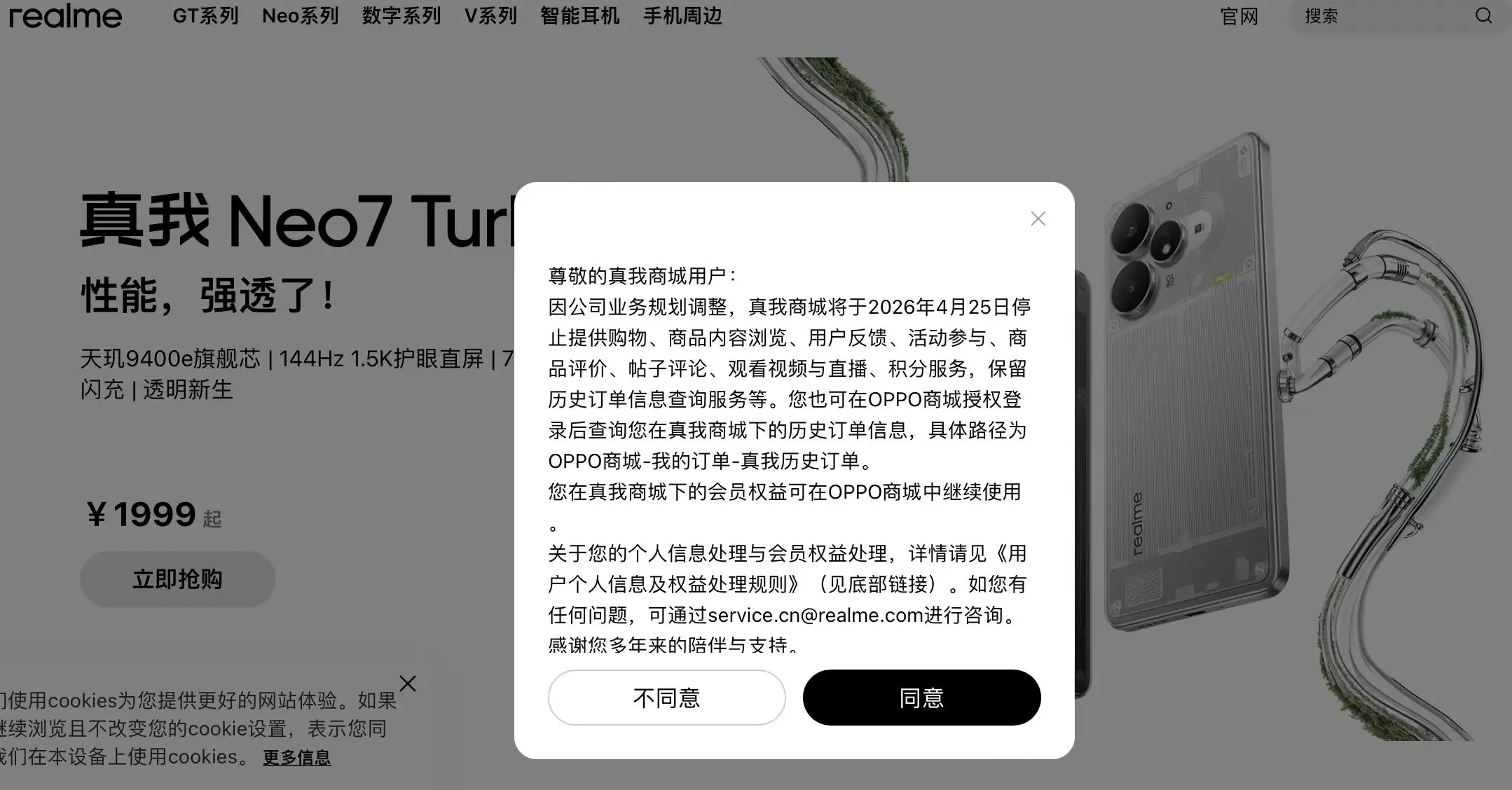真我商城4月底停运,业务将全面整合至OPPO体系