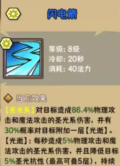 所以,优先进行技能加点的话,核心输出是一定要前期升起来的,然后后期根据大家面对的场景来进行生存续航之类的加成,控场技能效果在此时也可以点起来,而被动技能效果上面大家就放在顺序的最后位,因为他的被动能力只要跟主动技能相合的话,基本是没有问题的,在技能效果上面,大家可以将圣辉斩这个技能先提升起来,使用这个技能每次对敌方进行回弹的话,都会造成120%的光明类型伤害效果,特别是其中的最后一次,也只是连击当中的第三次,在其中可以触发一个印记能力,这个印记能力叠加起来的话,可以给他带来的增伤是每一层都有8%的,所以作为他的一个核心技能,大家可用的机会也比较多,另外这个技能有一个优势,就是在冷却时间上面,只要8秒就可以再一次使用,所以他前期的这个印记用完了之后,可以快速的再一次叠加更多的印记层数伤害效果,相对于这个技能来说连贯的程度还是比较高的。