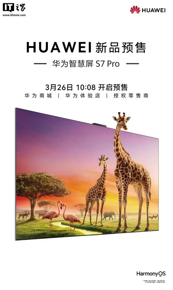 IT之家 3 月 26 日消息,华为终端今日宣布,华为智慧屏 S7 Pro 官宣今日 10:08 开启预售,主打低反光护眼屏,定价 7999 元起。