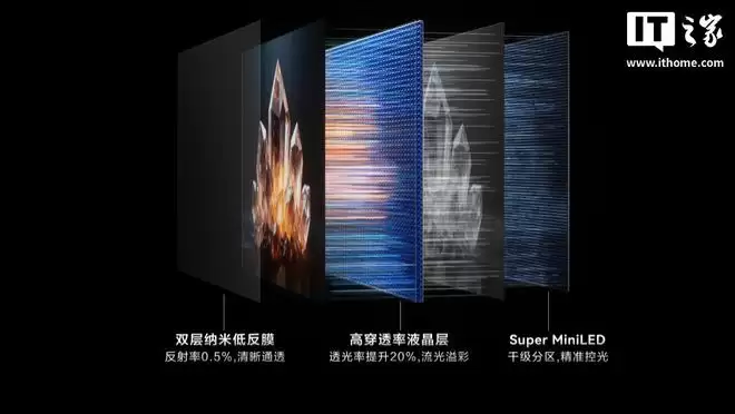 据介绍,华为智慧屏 S7 Pro 搭载 Super MiniLED 黑晶屏,支持 10.7 亿色、2000nit 峰值亮度,分辨率达 3840×2160,拥有 99.0% 屏占比 + 178°(典型值)可视角度,可实现 288Hz 倍频刷新率、超薄零贴墙效果。