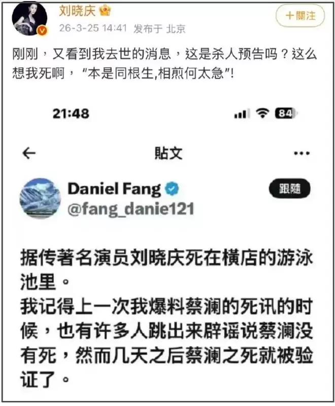 刘晓庆炮轰外甥制造“刘晓庆游泳池去世”谣言后,外甥靖然透过律师发布声明否认,且澄清未参与“珠宝盗窃”、“举报违建”、“不想刘晓庆有后代”等争议事件。值得一提的是,外甥直接在声明中承认与刘晓庆存在家庭