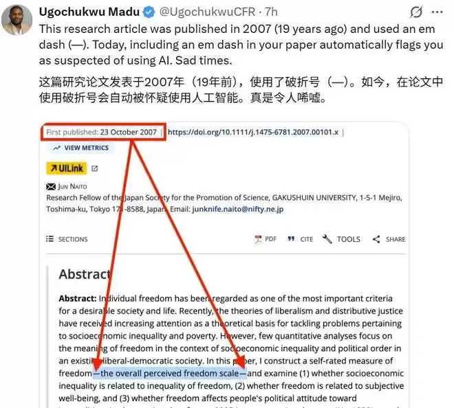 至于破折号识别法,更是几乎已经普及,也迫使相当多的人类作者改变自己的写作习惯。