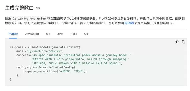 ▲API 上关于Lyria 3 Pro的介绍(图源:Gemini API)