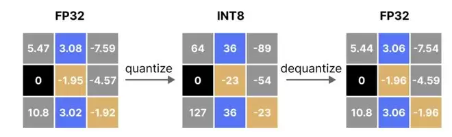 量化就像把人工智能模型中使用的非常大的数字缩小成更小的数字,从而节省空间并提高运行速度,譬如不再使用超高精度的数字(浮点数),而是使用更简单的数字(整数)。图源:CloudThrill
