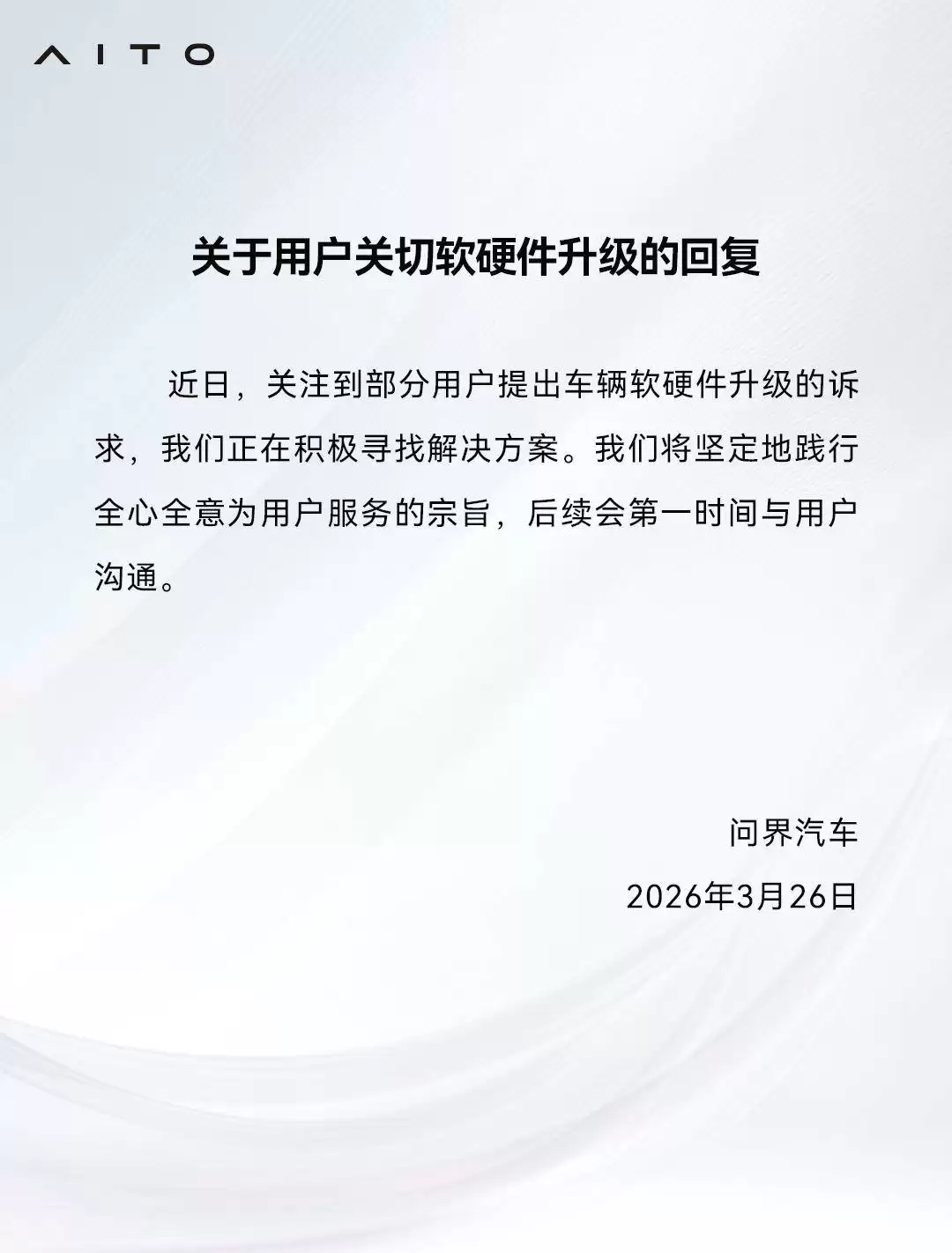 问界回应车辆升级诉求:承诺及时沟通并提供解决方案