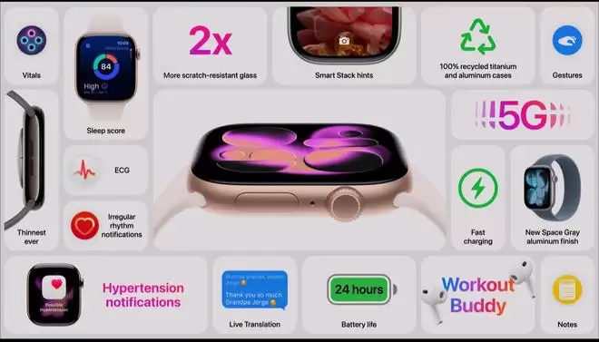 该机相比 Series 10 主要就是升级新款陶瓷涂层,抗刮能力提升 2 倍,同时带来 5G 蜂窝数据连接(支持中国联通 / 电信 / 移动)、高血压检测功能,至高提供 24 小时续航(最新称支持全天使用)。