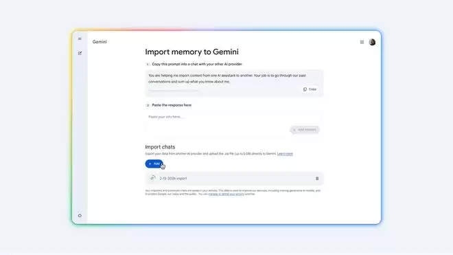IT之家 3 月 27 日消息,谷歌今日宣布为 Gemini 增加一项新的“记忆导入”功能,旨在让用户更便捷地从其他 AI 服务切换至 Gemini AI。