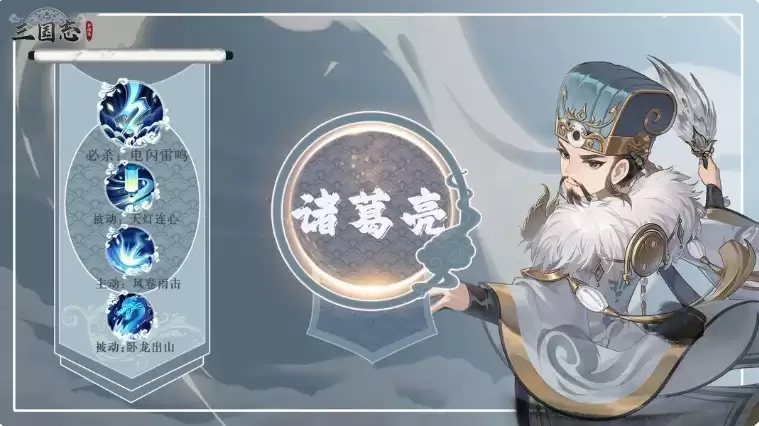 那么除了这两个主将角色,跟他们在一起有比较好的加成之外,走谋士队在阵容当中大家还可以放一个诸葛亮,诸葛亮放在其中的话,他也是可以为谋士队带来更多加成的,其中玩儿孙权的时候,主要注意他技能效果当中核心的能力是要比普通攻击强度更高一些,这里主要代表他能力的就是虎踞江东,这个技能在使用的时候消耗的3点怒气前期还是比较容易获取的,施加的状态叫做天子之气,利用这个能力敌人在攻击他时,他反弹的伤害出去是直接攻击到对面目标的。