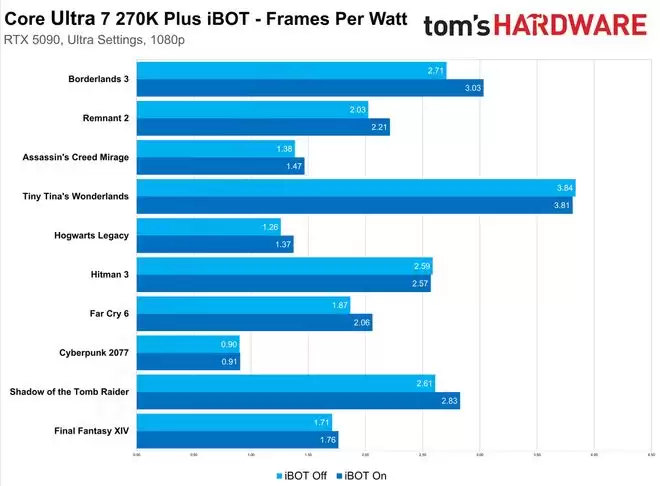IT之家 3 月 27 日消息,科技媒体 Tom's Hardware 昨日(3 月 26 日)发布博文,在英特尔酷睿 Ultra 200S Plus 系列芯片上测试二进制优化工具(iBOT),发现游戏平均帧率提升约 8%,峰值达 18%。