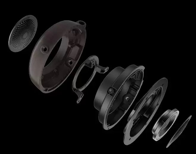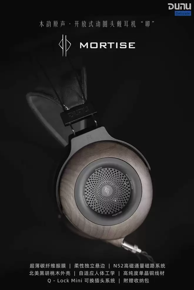 该耳机整体重量约 300 克,搭配自适应弹性头梁和人体工学耳罩,采用北美黑胡桃木 CNC 精雕外壳,搭载 50mm 超薄碳纤维振膜 + 柔性 PU 悬边,配有高磁通量磁路系统,耳机同时采用可换线设计(双 3.5mm 接口),标配高纯度单晶铜线材。