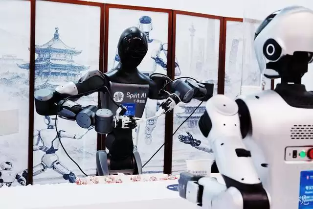 一个 "机器人餐吧 "成了2026中关村论坛年会最热闹的打卡点之一。银河通用、乐博空间、好饮科技、千寻智能、乐聚……不同品牌的机器人接力将餐盘送到观众面前——没有人工干预,统一 "大脑 "调度完成。一位连续