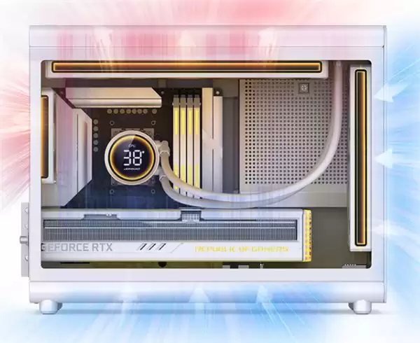 D33系列定位为风道优化的M-ATX规格机箱。其设计采用了圆润的造型线条,并搭配磁吸格栅面板,为整体增添了电竞科技感。