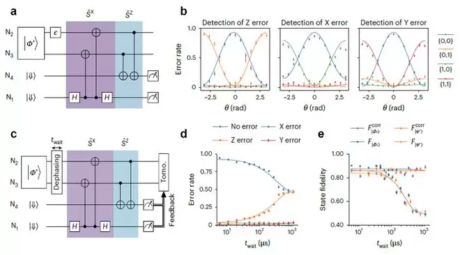 在发表于 Nature Electronics 的成果中,贺煜与团队利用这套系统证明了高精度线路的可行性。他们用原子核自旋作为比特,实现对两个粒子编码辅助空间的高精度量子非破坏(QND)读出。