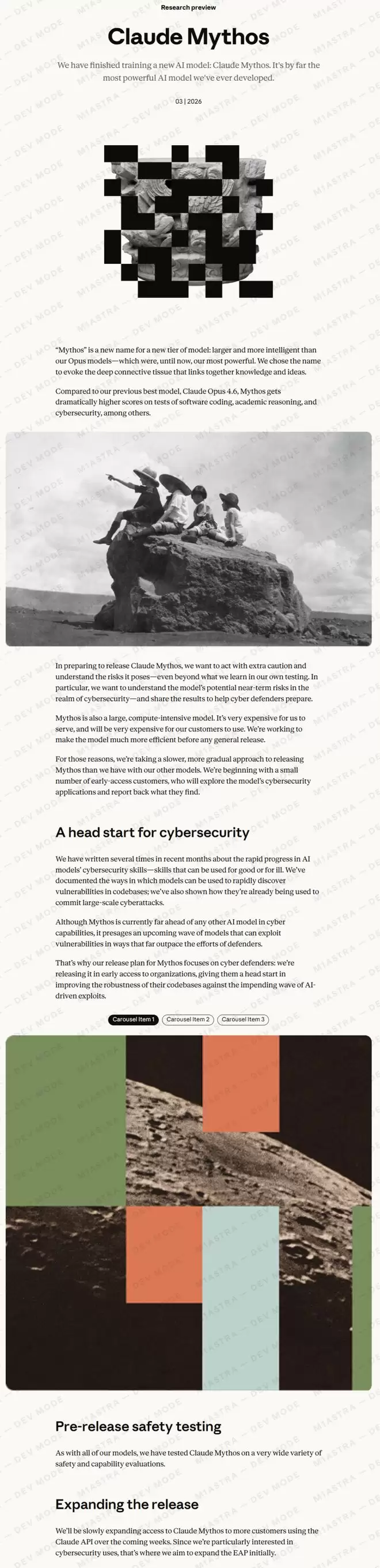 Anthropic随后也不装了,直接承认:这个模型是真的,而且是我们造过的最强的东西,能力是「阶跃式」的跨越。