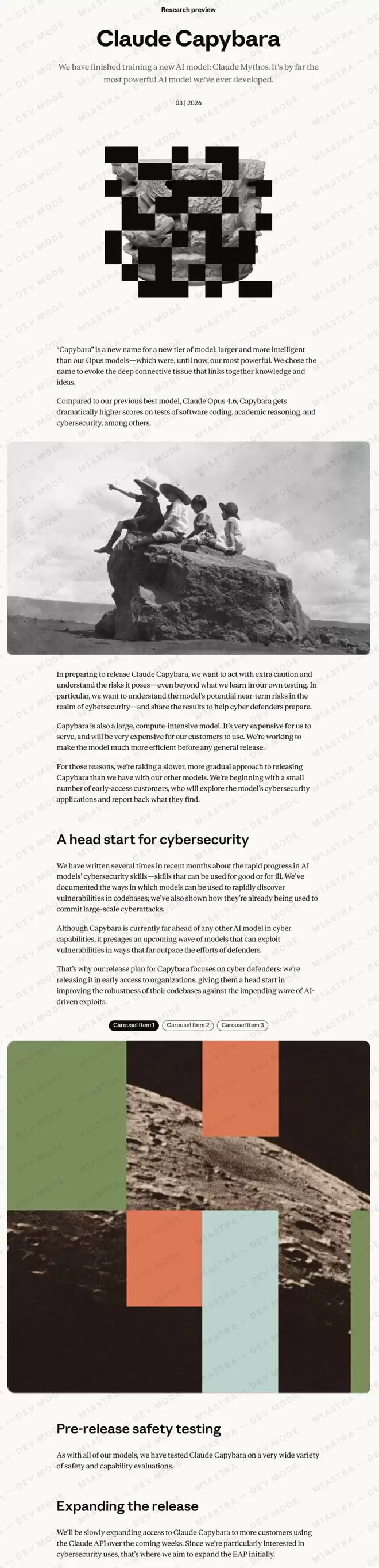 而Mythos所属的「Capybara」(水豚),是Opus之上全新的第四级——更大、更强、也更贵。