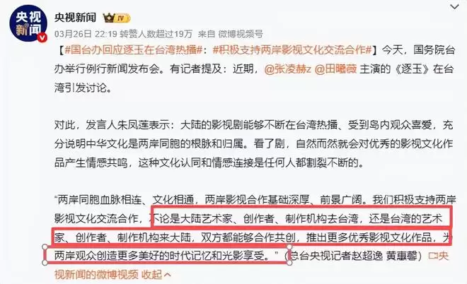 国台办明确表态,不论是大陆创作者、机构赴台,还是台湾艺人、团队来大陆。