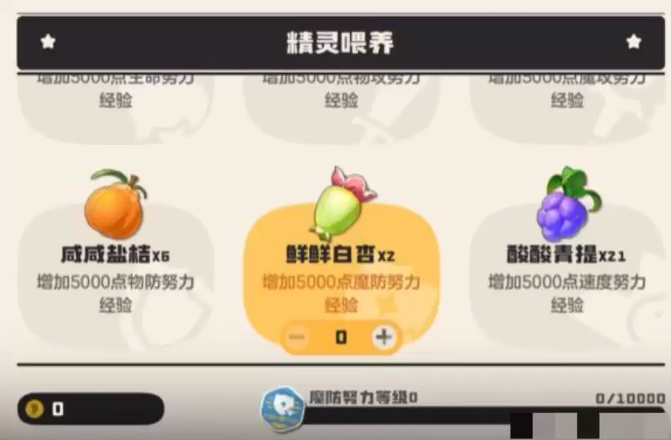 当玩家手中有了努力值之后,针对于不同的宠物,加点的思路往往是不一样的,输出类型的精灵,比如火系的那些主打物攻的精灵,应该优先加入主攻属性和速度,在实战的过程当中能够秒杀小怪物,而且还能够抢先手,防御型的精灵就侧重于平衡物防和魔防。不然遇到高攻击性的敌人,很容易出现阵亡的情况。针对于治疗辅助类型的宠物就重点加生命值和速度。其实大家在积攒努力值的时候,建议存够60颗以上再进行大规模的调整。