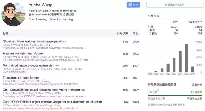 作为一位资深研究者和工程师,王云鹤拥有非常亮眼的学术履历,其谷歌学术引用量已经突破了 3.3 万。
