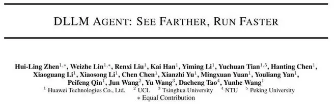 在最近王云鹤主导的论文《DLLM Agent: See Farther, Run Faster》中,其团队探讨了一个基础但经常被忽视的问题:在智能体(Agent)框架、监督数据和交互预算完全相同的情况下,底层语言模型的生成范式(基于扩散的 DLLM 与基于自回归的 AR)是如何深刻影响智能体的规划、工具使用行为以及整体决策轨迹的。