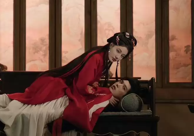 她所诠释的鬼王贺思慕,红袍曳地、银发垂肩、紫眸幽邃,重工刺绣袍服缀满仿古琉璃珠,步履轻移间珠玉相击,清越如磬;独创“浮滑步法”,足不沾尘,通身萦绕非人之寂冷。