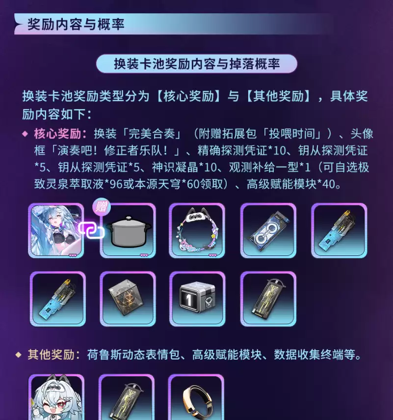 深空之眼奇响派对换装探测活动时间于2026-04-02维护后消耗移转之辉和限时探测凭证就可以获得本次内容的道具。维护后,可在游戏主界面找到奇幻派对活动入口,点击进入换装探测界面。