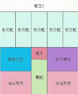 6、蛇为主C:按图内摆法图上阵(海藻可换一个紫薯+20易伤)。