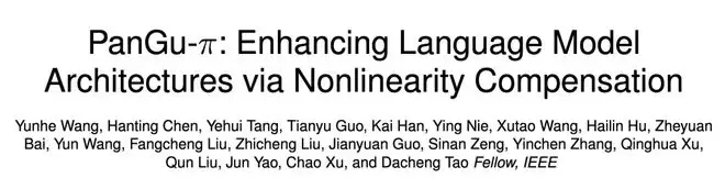 2024 年底,华为诺亚方舟实验室与北京大学等机构联合提出了「盘古 π」网络架构,尝试构建更高效的大模型架构,以解决 Transformer 架构中非线性能力不足的问题,显著降低特征塌陷,王云鹤在此论文中署名第一作者。