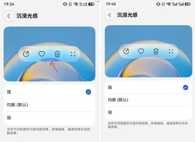 强、均衡(默认)、弱,三档可选,效果越强,通透质感与光效越显著。为什么要有三档?因为不是所有芯片都跑得动。