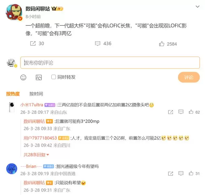 这套配置放在长焦上,已经是行业顶配,如果再加上2亿超广角和2亿主摄,那小米18 Ultra的影像系统可能成为2026年最不讲道理的方案。