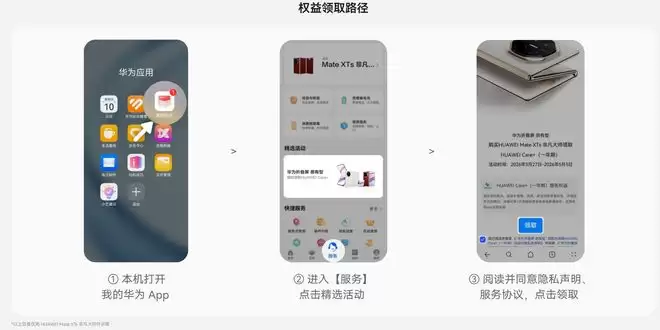 活动期间购新机,最晚支持于 2026 年 5 月 5 日 24 点前参与活动,领取权益,用户可通过“我的华为 App—(底部)服务 — 精选活动 —“华为折叠屏很有型”限时赠送 HUAWEICare+ 活动 —— 领取”完成权益领取。