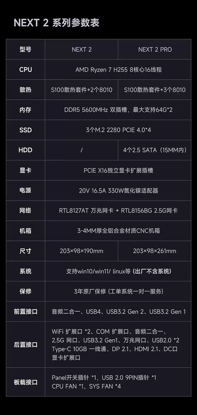 极夜Next 2迷你主机开售:R7 H255售2999元,支持独显与双网口