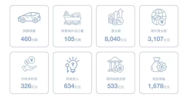 先看最亮眼的核心数据,每一个都足够震撼!全年营收8040亿元,再创历史新高;归母净利润326亿元;研发投入634亿元,远超净利润;国内纳税533亿元,同样高于净利润;全年销量460万辆,海外销量105万辆;现金储备高达1678亿元,家底超厚。