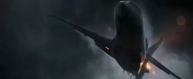 突然,飞机剧烈颠簸,爆炸,舱门被气压挤飞。