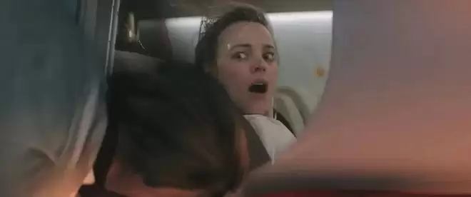 混乱中有人掐着琳达的脖子求生,她没有犹豫,捡起地上的叉子,把人送向了机舱外。