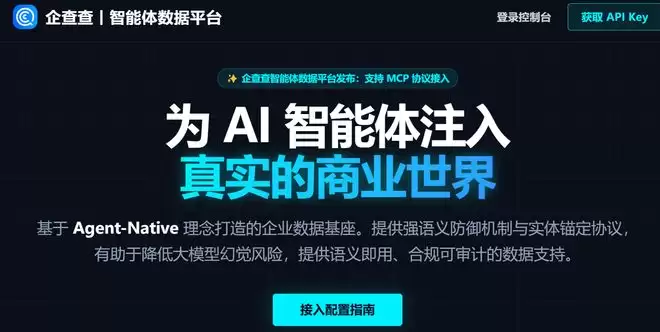 企查查正式推出智能体数据平台(agent qcc com),可通过标准MCP协议对接阿里云百炼、扣子Coze、飞书集成平台等主流Agent平台。该平台针对AI Agent企业级应用面临的模型幻觉、上