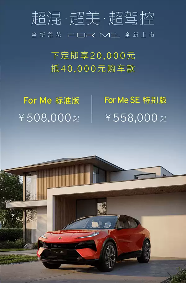 3.3秒破百的莲花FOR ME上市 插混超跑SUV售50.8万起