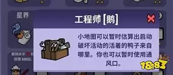 工程师是鹅鸭杀中一个极具特色的角色。其技能为在短时间内可以看到地图上所有管道的位置。这一技能在游戏中有着至关重要的作用。