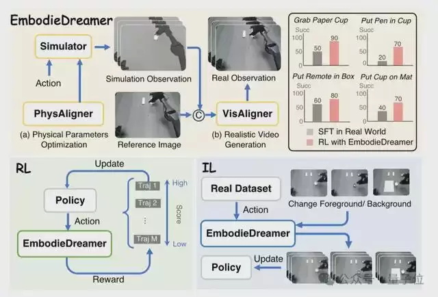 相较于传统的世界模型,GigaWorld-1深度继承并发展了极佳视界在去年7月发布的EmbodieDreamer核心架构。