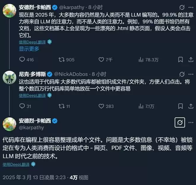 不知道大家还记不记得,去年 3 月,AI 大牛 Karpathy 发过一条推文。大体意思是说:现在的大多数内容仍然是为人类编写的,但未来,读取这些内容的可能就不是人类而是 AI 了。因此,从现在开始,我们就要考虑怎么把文档写得对 AI 更友好