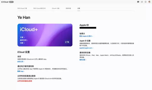 当你输入正确的苹果id和密码登录后,就能进入icloud的网页版界面。在这里,你可以看到丰富的功能板块。