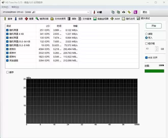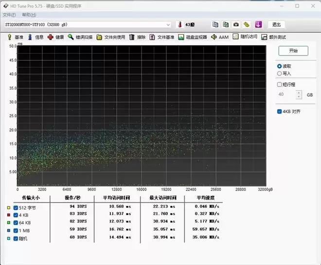 在低于64KB的小文件测试中,希捷酷狼Pro 32TB的每秒进行读写(I/O)操作约为94 IOPS,对于特别小的文件,比如512Byte的超小文件,读取速度为0.046MB/s,平均访问延迟10.5ms。