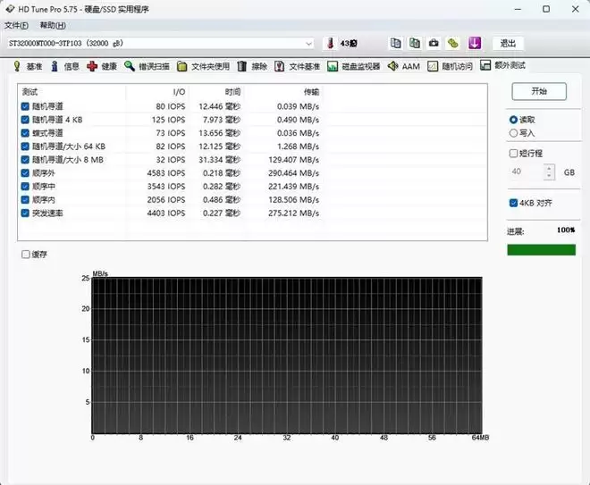 下面看看4块酷狼Pro 32TB硬盘组成Raid 0后在Windows系统下的性能表现。
