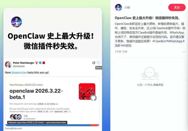 3月22日,OpenClaw发布了一次底层更新,这本是一次常规的技术迭代,却给腾讯的相关应用带来了意外的考验。