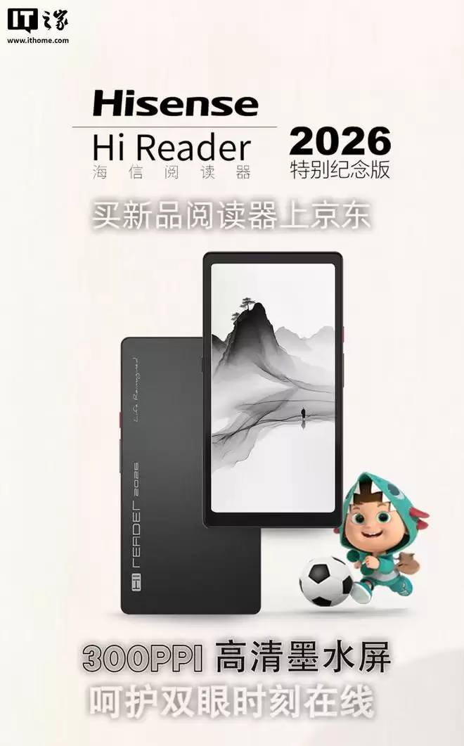 IT之家 3 月 30 日消息,海信现已在京东发售 Hi Reader 2026 特别纪念版阅读器,该机配备一块 6.7 英寸黑白墨水屏面板,定价为 1999 元,首发价 1899 元。