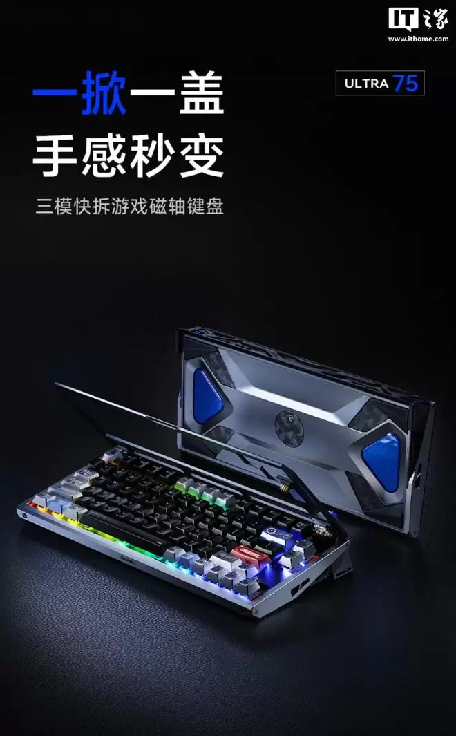 IT之家 3 月 26 日消息,达尔优 Dareu 昨日宣布推出 Ultra 75 三模磁轴键盘。其在有线 USB 与无线 2 4GHz 模式下均支持 8kHz 回报率,拥有 0 01mm 的 Ra