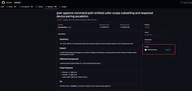 蚂蚁集团旗下的 AI 安全实验室,近期对开源智能体框架 OpenClaw 进行了一次专项安全审计。在为期三天的检测中,团队共提交了 33 个漏洞报告,而在最新发布的 2026.3.28 版本中,OpenClaw 已确认并修复其中 8 个漏洞,包括 1 个严重级别漏洞、4 个高危漏洞以及 3 个中危漏洞。
