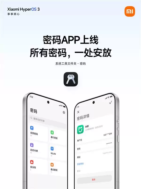 小米澎湃OS 3新推密码App:自动抓取、跨设备加密同步