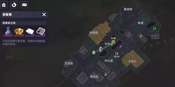 当玩家来到了谷仓区密室这里的时候,不要着急先冲进去,而是先抢地图中间的免保点。这里其实不用钥匙就能够打开,运气好的话,玩家还能够获得大红的装备,这样的话新手玩家就能够快速的提升战斗力,至于其他方面的话,还能够获得基础的弹药药品,从而能够保证玩家正处于新手时期的生存。