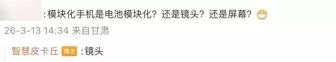 同时有网友询问“模块化手机是电池模块化?还是镜头?还是屏幕?”,这位博主表示是“镜头”。