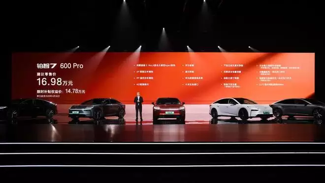 铂智7以车长5130毫米、轴距3020毫米的大尺寸轿车定位,搭载华为鸿蒙座舱5、Momenta R6强化学习大模型激光雷达智驾,以及可选双腔空气悬架,改变了15-20万元级纯电家用轿车的配置基准。